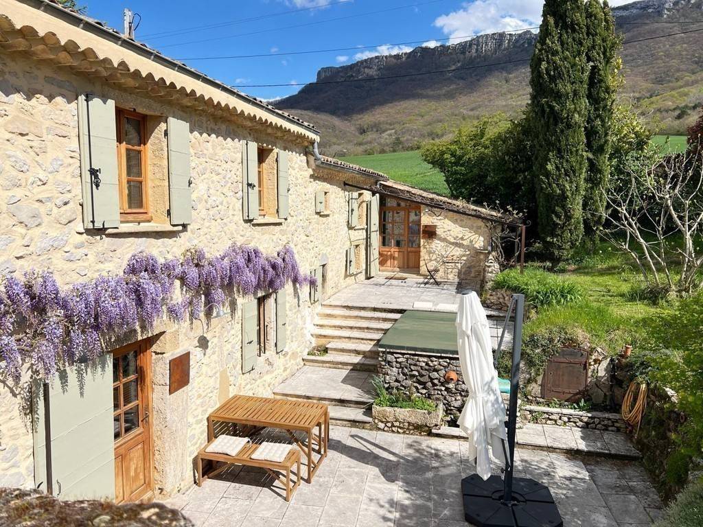 Gîte en pierre isolé, vue imprenable sur le Vercors, spa privé, trois chambres, grand terrain arboré. Nature, calme, rando, escalade, rivière à 100 m… le tout à 30 min de Valence. Un havre de paix à 550 m d’altitude !