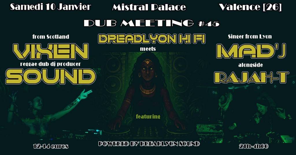 Le premier Dub Meeting de l’année 2026 sera féminin ! Avec la venue tout droit d’Écosse de VIXEN SOUND, une première dans la région, et de la lyonnaise MAD J. Ne ratez pas cette 45ème dance !