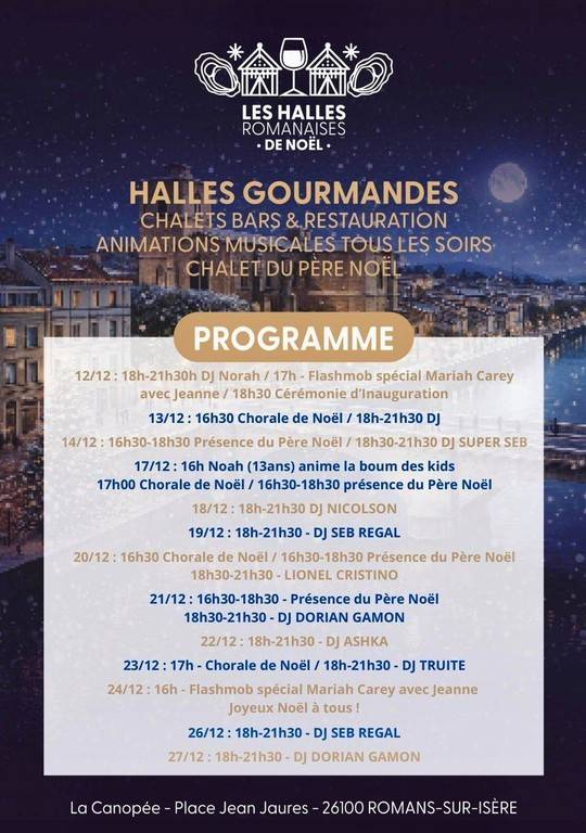 - Le 21 Décembre de 16h30 à 18h30 Père Noël ; de 18h30 à 21h30 : DJ Dorian Gamon.