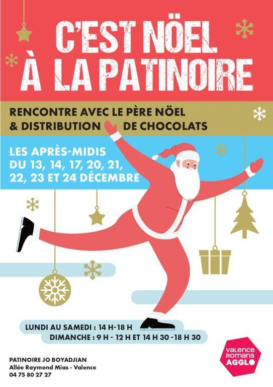 Venez fêter Noël à la Patinoire Jo Boyadjian ! Le Père Noël vous attend les après-midis du 13 au 24 décembre pour une distribution de chocolats, pour les petits et les grands !