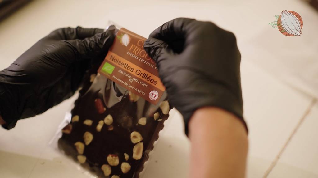 The Frigoulette workshop doesn't use animal fats and only makes pure cocoa butter chocolate, without the use of palm oil and gluten-free.
