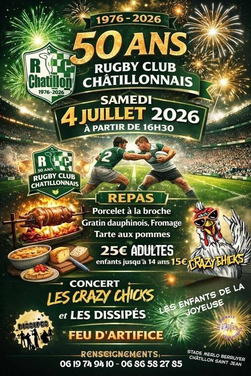 Le Rugby Club Châtillonnais fête ses **50 ans**… et ça va être une soirée inoubliable !