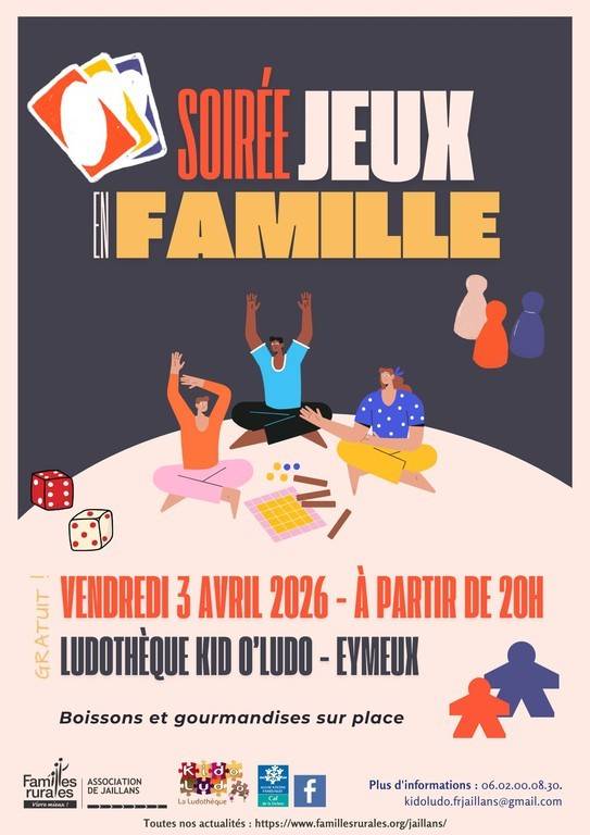 La ludothèque d'Eymeux vous propose une soirée jeux pour bien commencer les vacances !! Boissons et gourmandises sur place !!