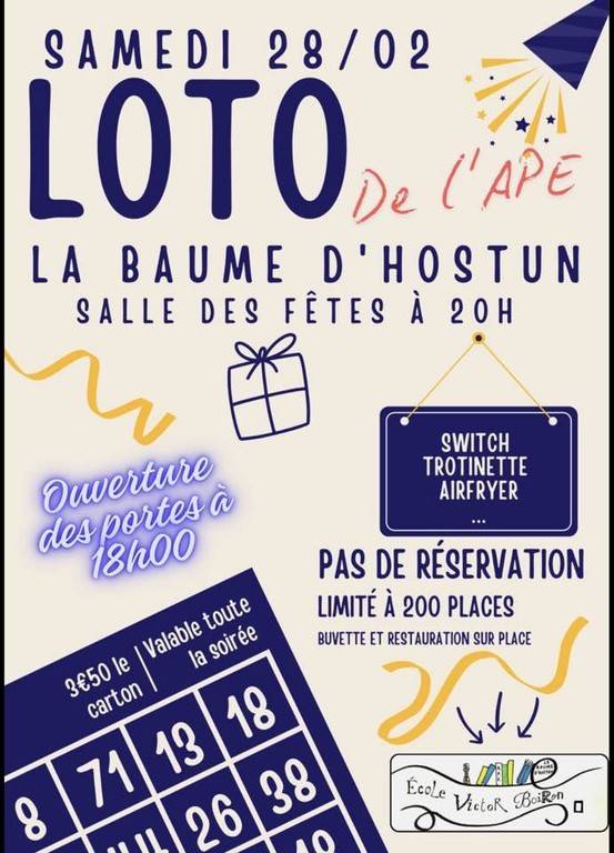 Nombreux lots à gagner! Places limitées, pas de réservation.