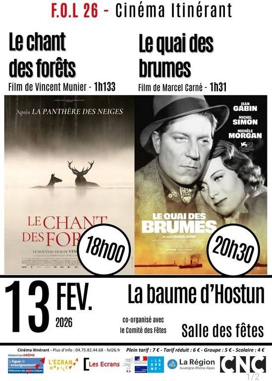 Projection des films Le Chant des Forêts et le Quai des Brumes