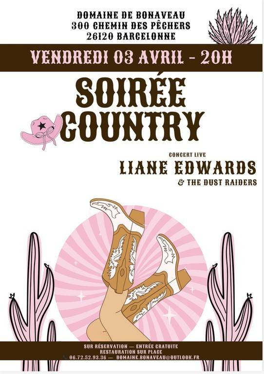 Venez passer une soirée country au Domaine de Bonaveau, animée par Liane Edwards & The Dust Riders !