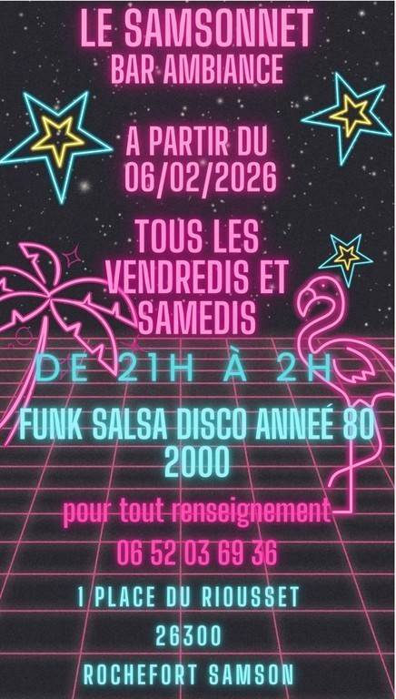 Tous les vendredis et samedis soirs, le Samsonnet se transforme en bar à ambiance: funk, salsa, disco, années 80/ 2000... il y a tout ce qu'il faut pour passer une bonne soirée.
