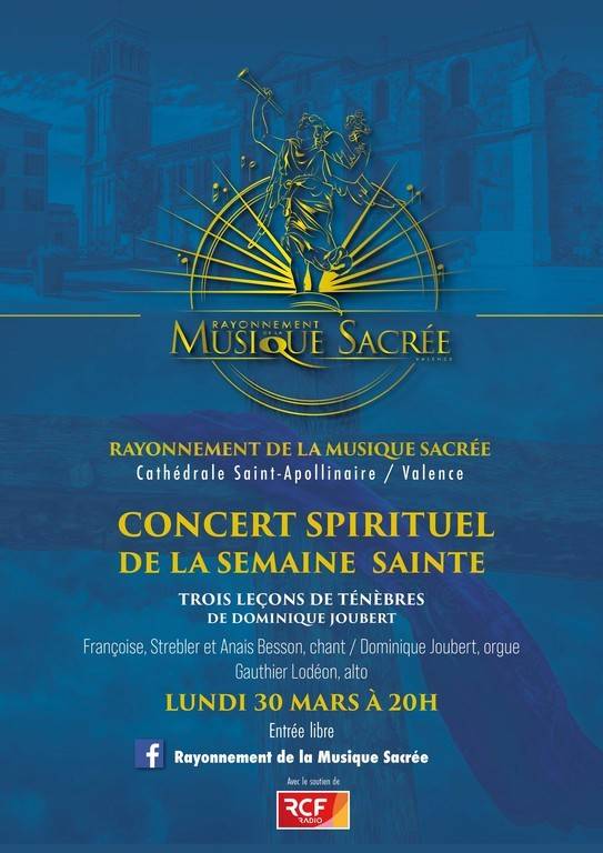Concert spirituel de la semaine Sainte avec "trois leçons de ténèbres" de Dominique Joubert, interprété par Françoise Strebler, Anais Besson, Dominique Joubert et Gauthier Lodéon.