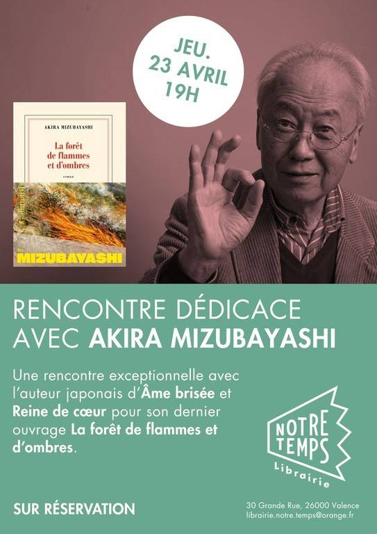 Akira Mizubayashi viendra nous parler de son dernier ouvrage "La forêt de flammes et d'ombres", la rencontre sera suivie d'une séance de dédicace.