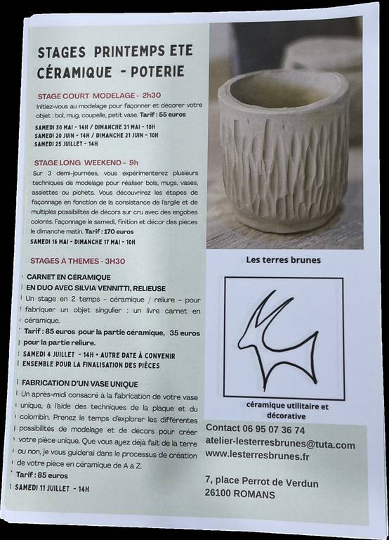 Les tarifs incluent les matériaux et les cuissons. Pour tous les stages, les productions seront cuites et émaillées par l'artisan et disponibles dans un délai de 8 semaines environ.