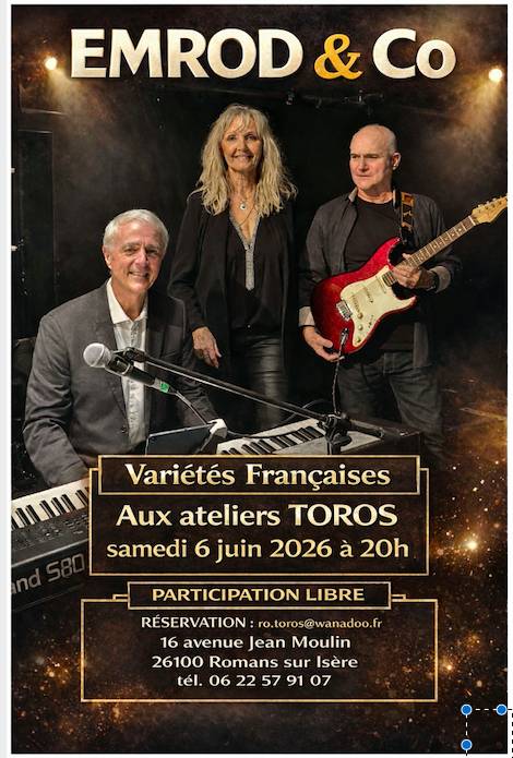 D'origine romanaise, Emrod & Co reprend depuis maintenant 5 ans des tubes de Michel Berger, France Gall ou encore Véronique Sanson, sur des accords de leur production. Ils seront à l'atelier Toros pour le plus grand plaisir de vos oreilles!