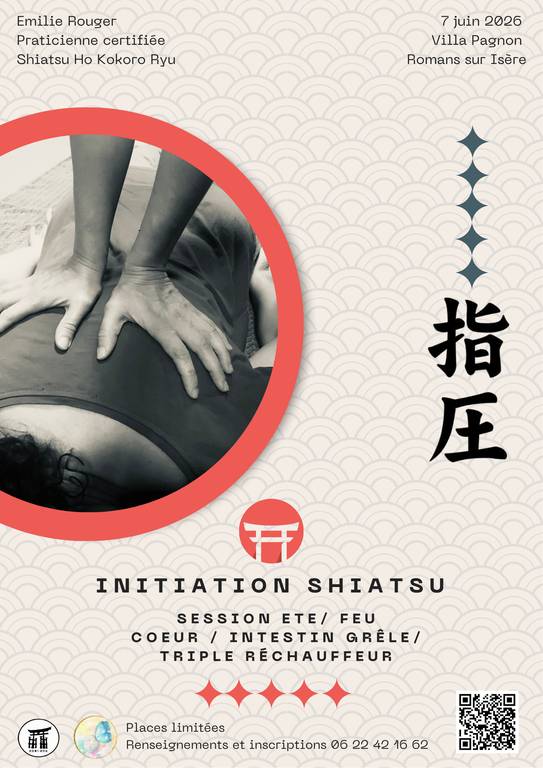 Et si vous preniez un moment pour vous reconnecter à votre corps et votre énergie grâce à une pratique ancestrale japonaise ? Pour retisser du lien à Soi, aux Autres, à la Nature je vous propose un cycle d’initiation au Shiatsu au fil des saisons, à suivre au complet ou seulement sur une journée. Cette méthode holistique de digitopressure japonaise apporte bien-être et travail de prévention. Vous serez guidé pas à pas pour vous initier à la pratique en binôme, pour recevoir et pour comprendre les bases de la théorie. La découverte sera accompagnée d’un Do-In (automassage énergétique) de saison pour harmoniser votre énergie.