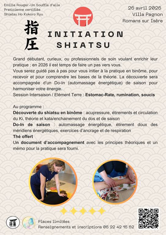 -Découverte du shiatsu en binôme : acupressure, étirements et circulation du Ki, théorie et kata/enchainement du dos et de saison.