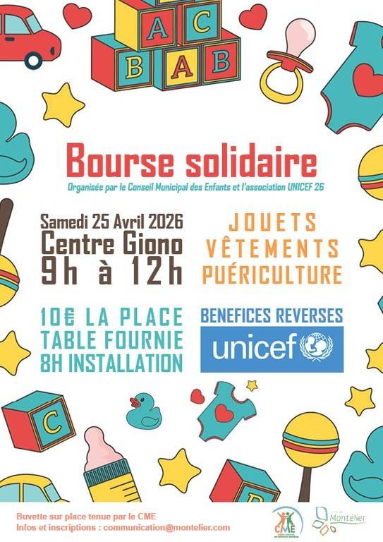 Le Conseil Municipal des Enfants organise une le SAMEDI 25 AVRIL de 9h à 12h au Centre Giono (jouets, vêtements, puériculture).