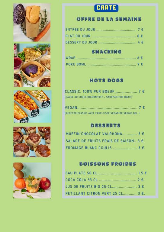 Pause Déj vous propose des produits frais et locaux de la Drôme : hot dog pur boeuf ou vegan, salades fraîches, poké bowl veggie, muffins et salades de fruits. Découvrez nos plats faits maison à Valence et son agglomération !