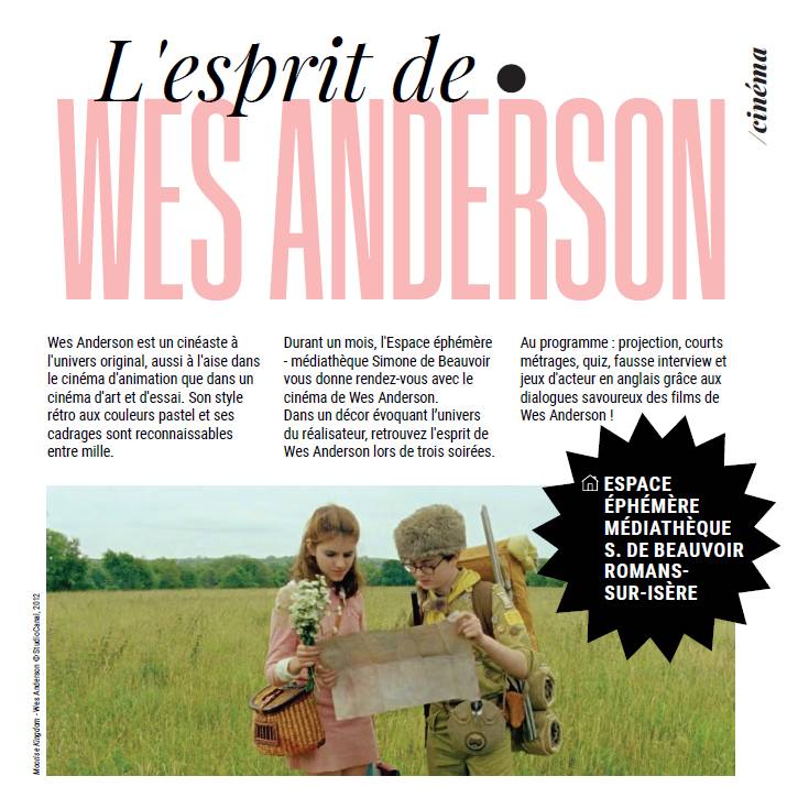 Durant un mois, l'Espace éphémère-médiathèque Simone de Beauvoir vous donne rendez-vous avec le cinéma de Wes Anderson.