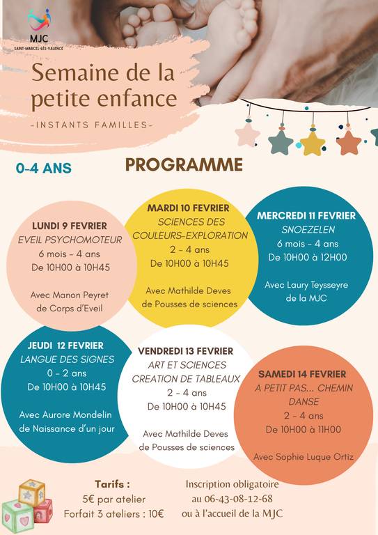 Tout au long de la semaine, nous vous proposons des ateliers en familles pour les 0-4 ans au sein de notre MJC !