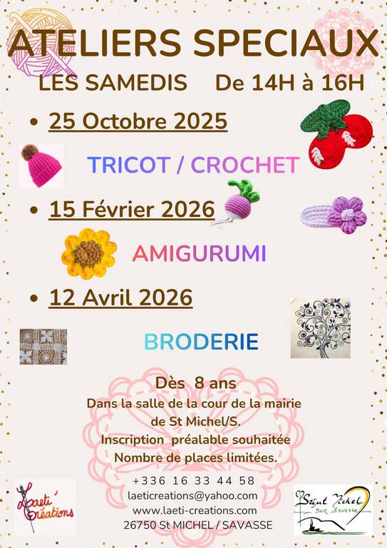 Ateliers spéciaux : Amigurumi et broderie