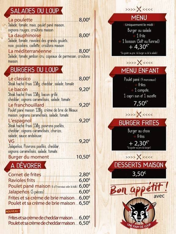 Une Faim de Loup, c' est Greg qui vous proposent de vous régaler de savoureux burgers, salades, desserts et pleins de petites choses à dévorer, autour d' un verre, ou à emporter.