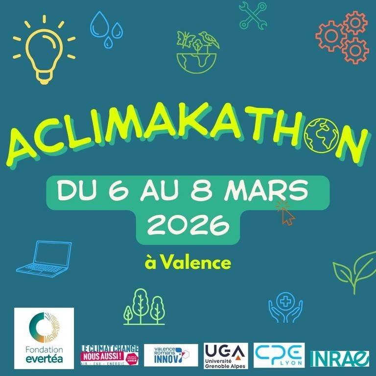 Le Aclimakathon est un événement collaboratif qui dure le temps d’un weekend : du 6 au 8 mars 2026 à Valence, ouvert à tous !