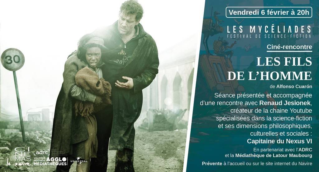 Renaud Jesionek est auteur et vidéaste français, spécialisé dans l'analyse de la science-fiction et de ses représentations de l'humanité, de la technologie et des mondes futurs. À travers des chroniques vidéo et des formats scénarisés, il explore le cinéma, la littérature et les jeux vidéo comme autant de miroirs critiques de notre présent. Il est le créateur du Nexus VI, une chaine Youtube spécialisées dans la science-fiction et ses dimensions philosophiques, culturelles et sociales. Il est également l'auteur de deux livres d'analyses des mondes de la SF : PLANÈTES (2024) et CRÉATURES (2025). En partenariat avec l'ADRC et la Médiathèque de Latour Maubourg. LES FILS DE L'HOMME de Alfonso Cuarón - U.S.A., Grande-Bretagne - 1h50 - 2006 - VOST - Avec Clive Owen, Clare-Hope Ashitey, Julianne Moore - Interdit aux moins de 12 ans - Dans une société futuriste où les êtres humains ne parviennent plus à se reproduire, l'annonce de la mort de la plus jeune personne, âgée de 18 ans, met la population en émoi. Au même moment, une femme tombe enceinte - un fait qui ne s'est pas produit depuis une vingtaine d'années - et devient par la même occasion la personne la plus enviée et la plus recherchée de la Terre. Un homme est chargé de sa protection...