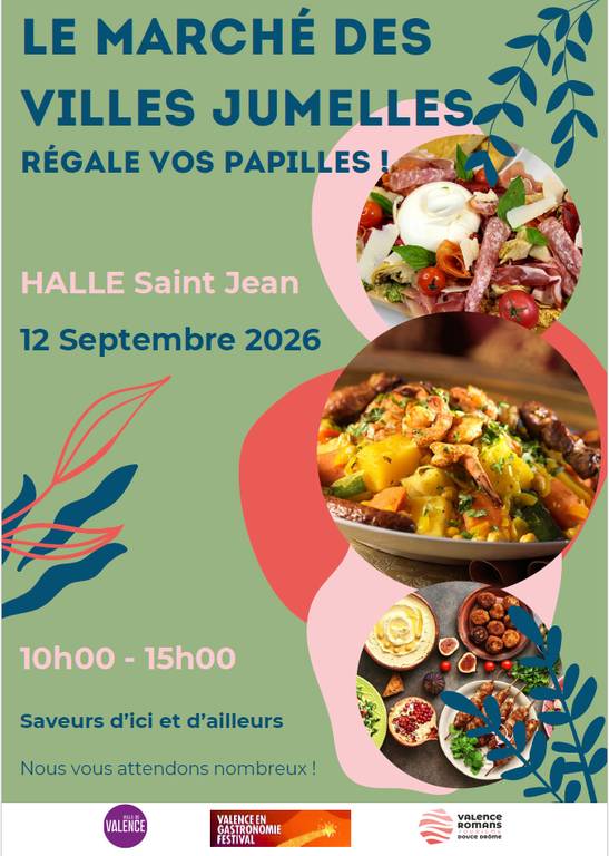 Sur la Place Saint-Jean, découvrez le marché des villes jumelles, mélange de goûts, de saveurs, d’odeurs caractéristiques de ces 6 cultures. Une véritable invitation au voyage au contact d’identités multiples, et une opportunité unique de se rapprocher de ces communes intimement liées à la ville de Valence.