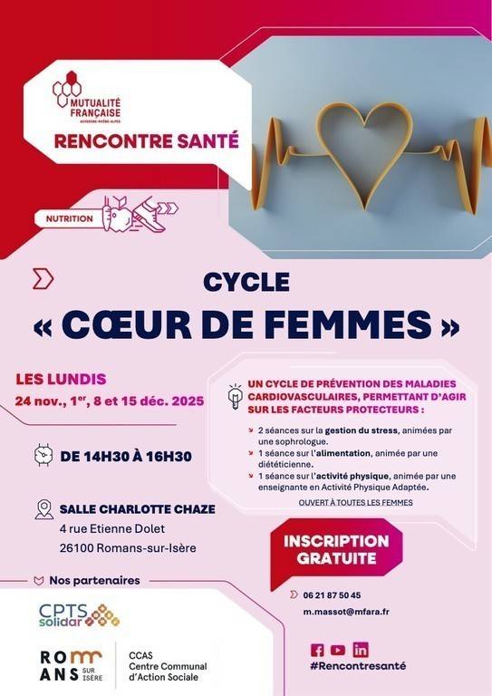 En complément, le cycle "Coeur des femmes" est un cycle de prévention des maladies cardio-vasculaires permettant d'agir sur les facteurs protecteurs :