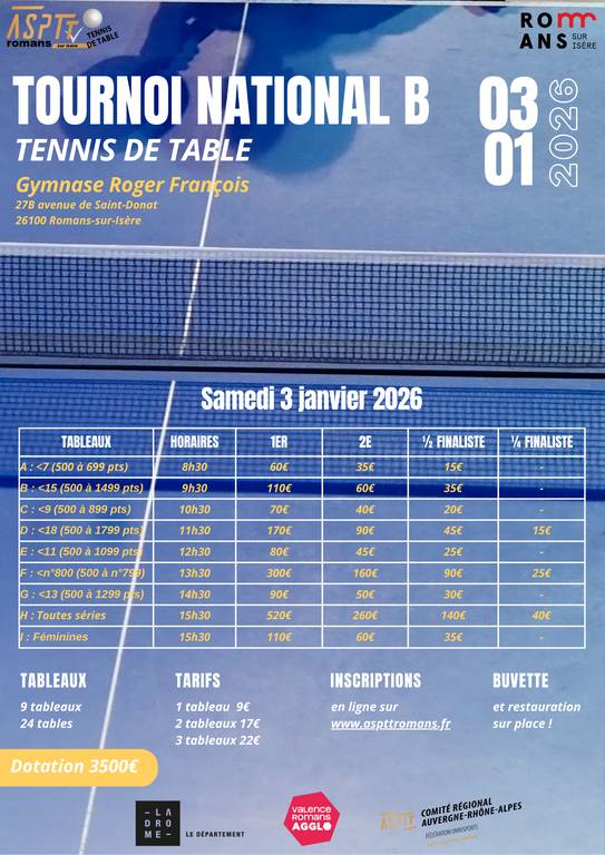 2ème édition du tournoi national de tennis de table de l'ASPTT ROMANS.