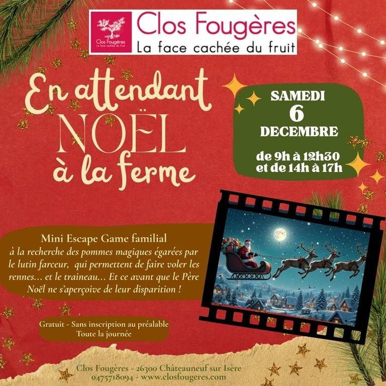 - Mini escape game familial : à la recherche des pommes magiques égarées par le lutin farceur, qui permettent de faire voler les rennes...et le traineau... et ce avant que le Père Noël ne s'aperçoive de leur disparition ! (gratuit sans inscription au préalable, toute la journée)