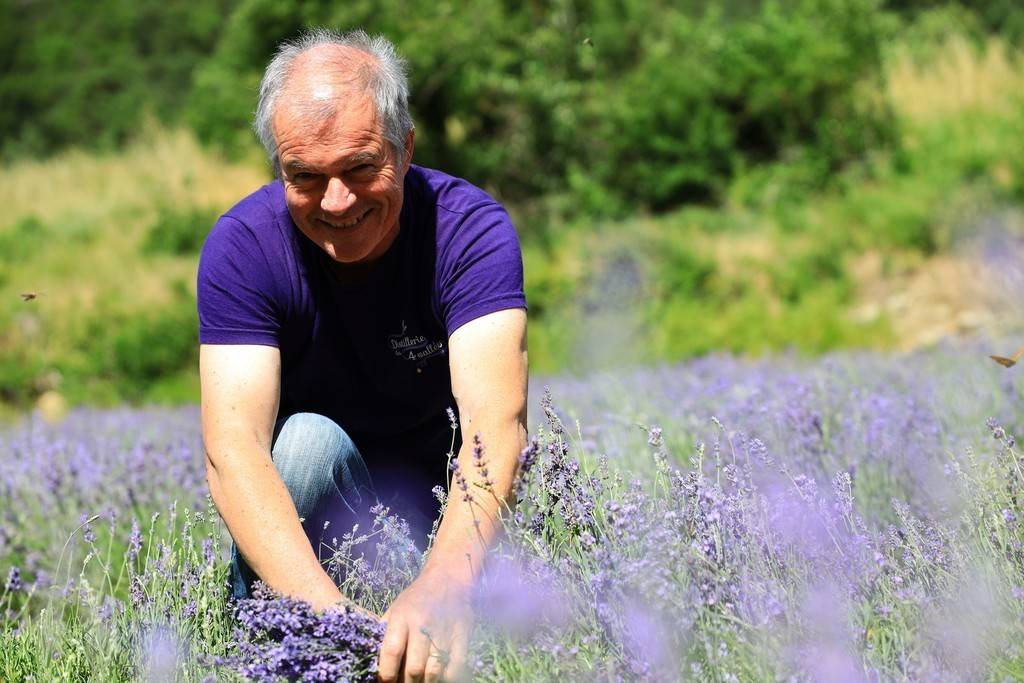 We verbouwen ongeveer dertig hectare lavendel en lavandin, maar ook hooi en graan, want we zijn ook veehouders. We hebben schapen, paarden, ezels en, nog origineler, dwergkonijnen en cavia's. We beheersen de kunst van het lavendel kweken van begin tot eind. We kweken verschillende soorten lavendel en lavandin in Chamaloc. We delen een oogstmachine met andere lavendeltelers en hebben onze eigen distilleerderij op de boerderij.