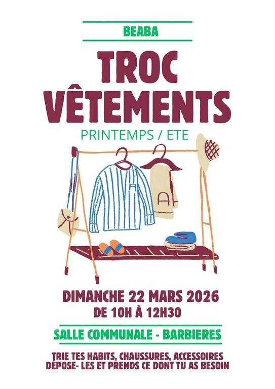 Faire du tri et acquérir de nouveaux vêtements, c'est possible! Venez déposer chaussures, accessoires, habits divers et récupérer ce qui vous tente.