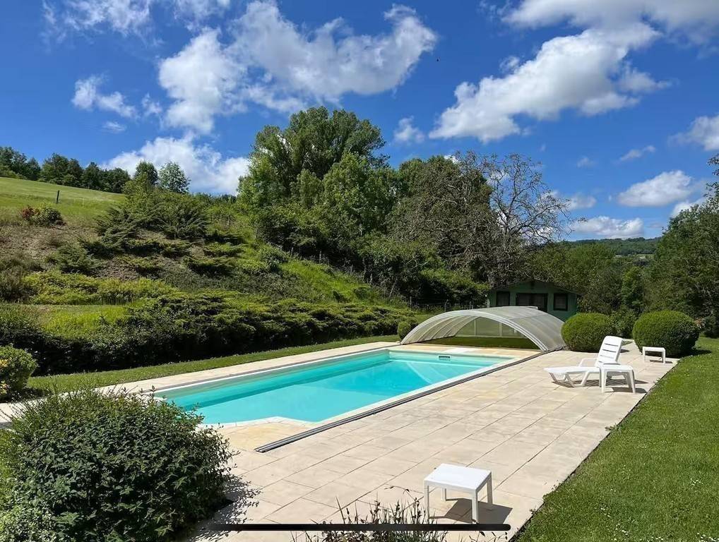 La maison est située dans un environnement calme, sur une propriété de 2000 m² avec piscine privée.