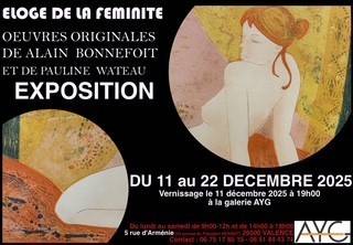 La Galerie AYG de Valence a le plaisir de présenter une exposition consacrée aux œuvres d’Alain Bonnefoit et de Pauline Wateau.